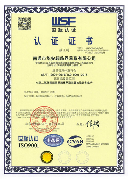 ISO 9001:2015 quality management system certification