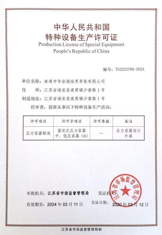 Special equipment production License (Pressure vessel manufacturing)
